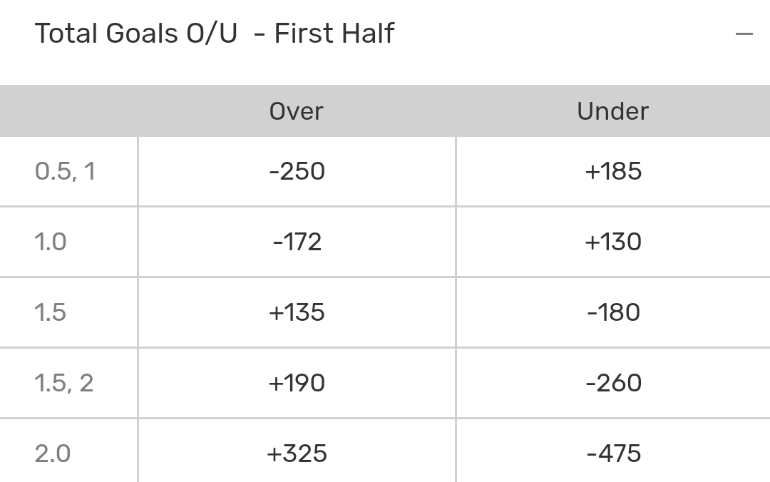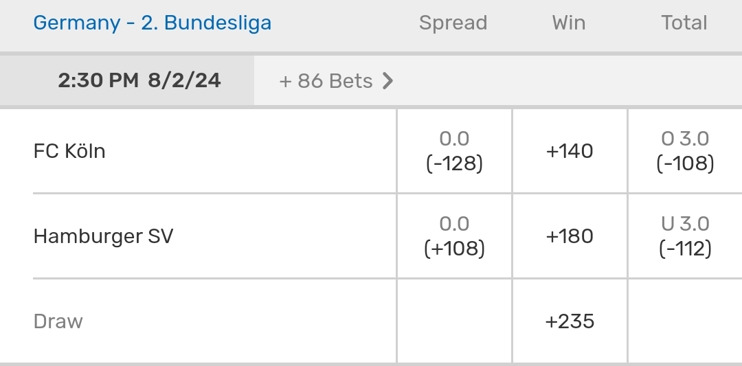Hamburger-Koln 1st Half over o.5 (Only O.75 and worst is available)