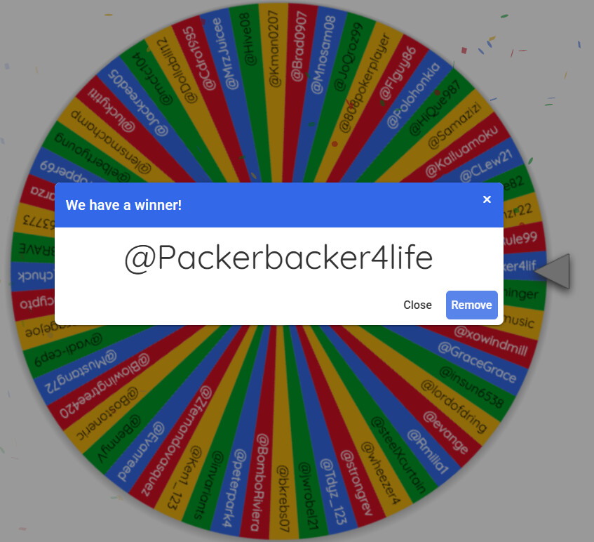 1st winner is @Packerbacker4life
