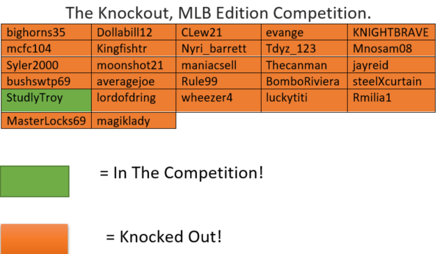 Dang yanks lost, new champion this time!! Good luck to the final three!!