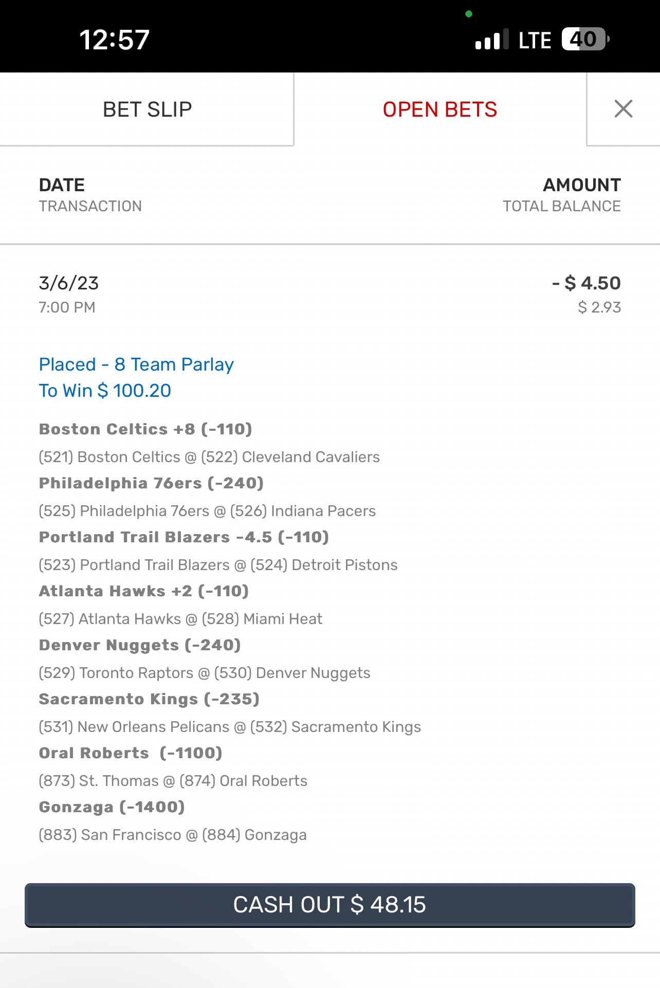 I made a 8 team parlay to win 100.20 and only won 54 dollars. I was trying to see how do I get my whole 100 because I don’t understand.