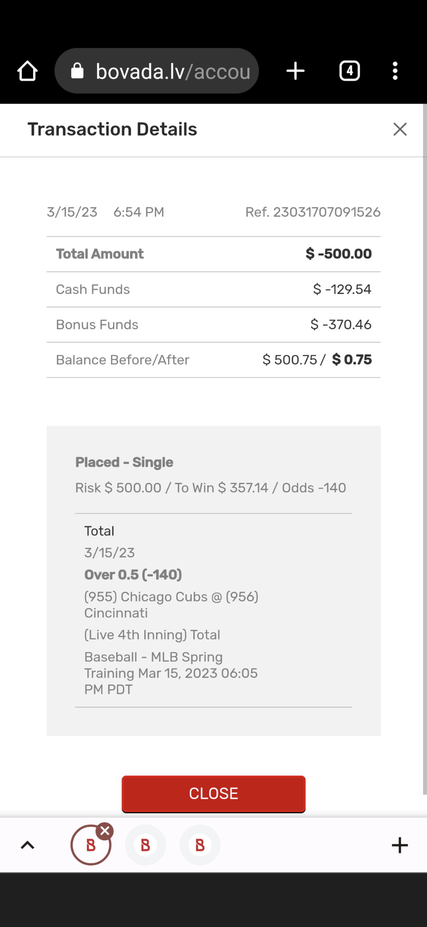 I won on the 4th inning over .5? I was paid already?