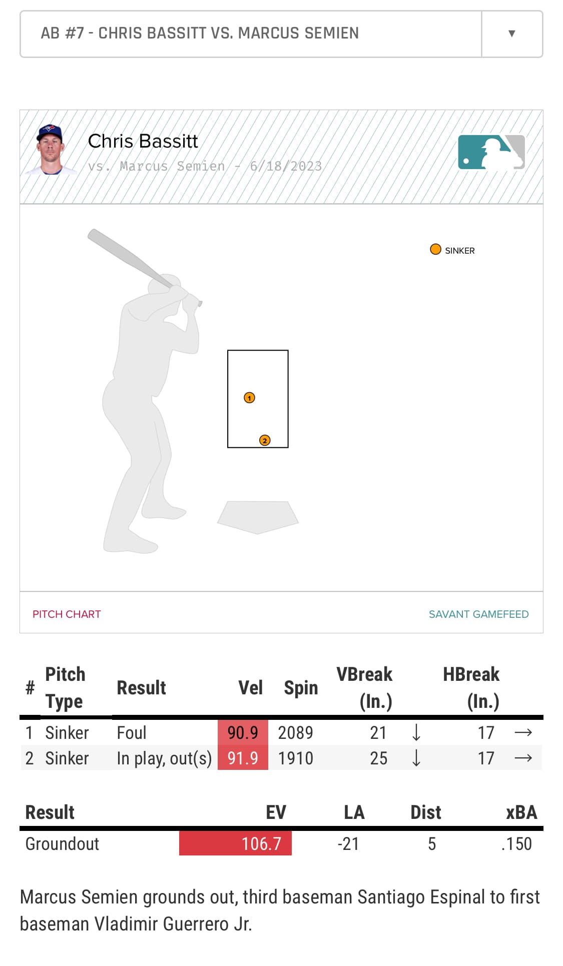 Correct. The first pitch was a foul ball. There was no ball in the at bat. The second pitch was a groundout. The outcome being graded as a ball is completely wrong. If it’s graded as a groundout then we have something else to talk about @Mikey_Bovada