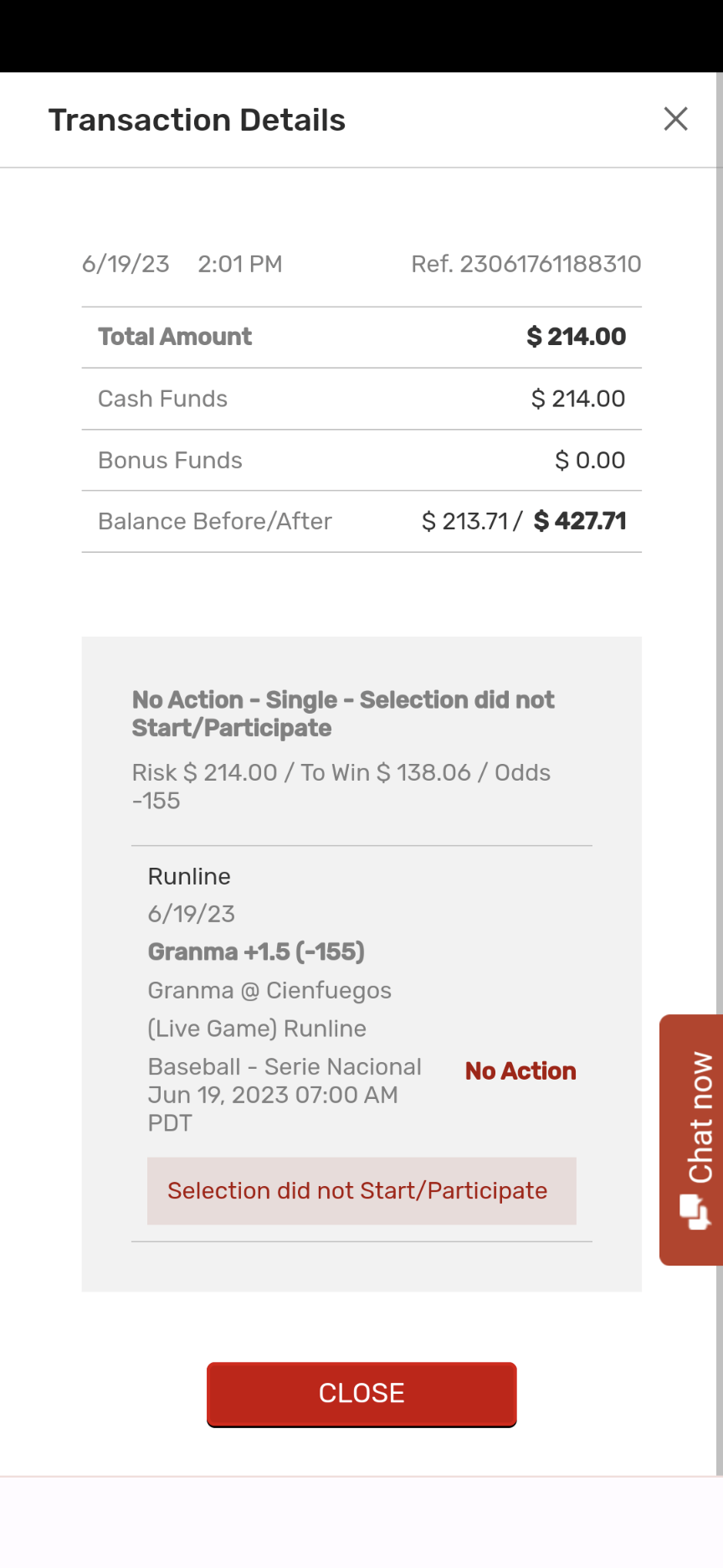 It has been resettled as “No Action”, I do see that the game was finished, will reach out to the Sports Team to confirm why.