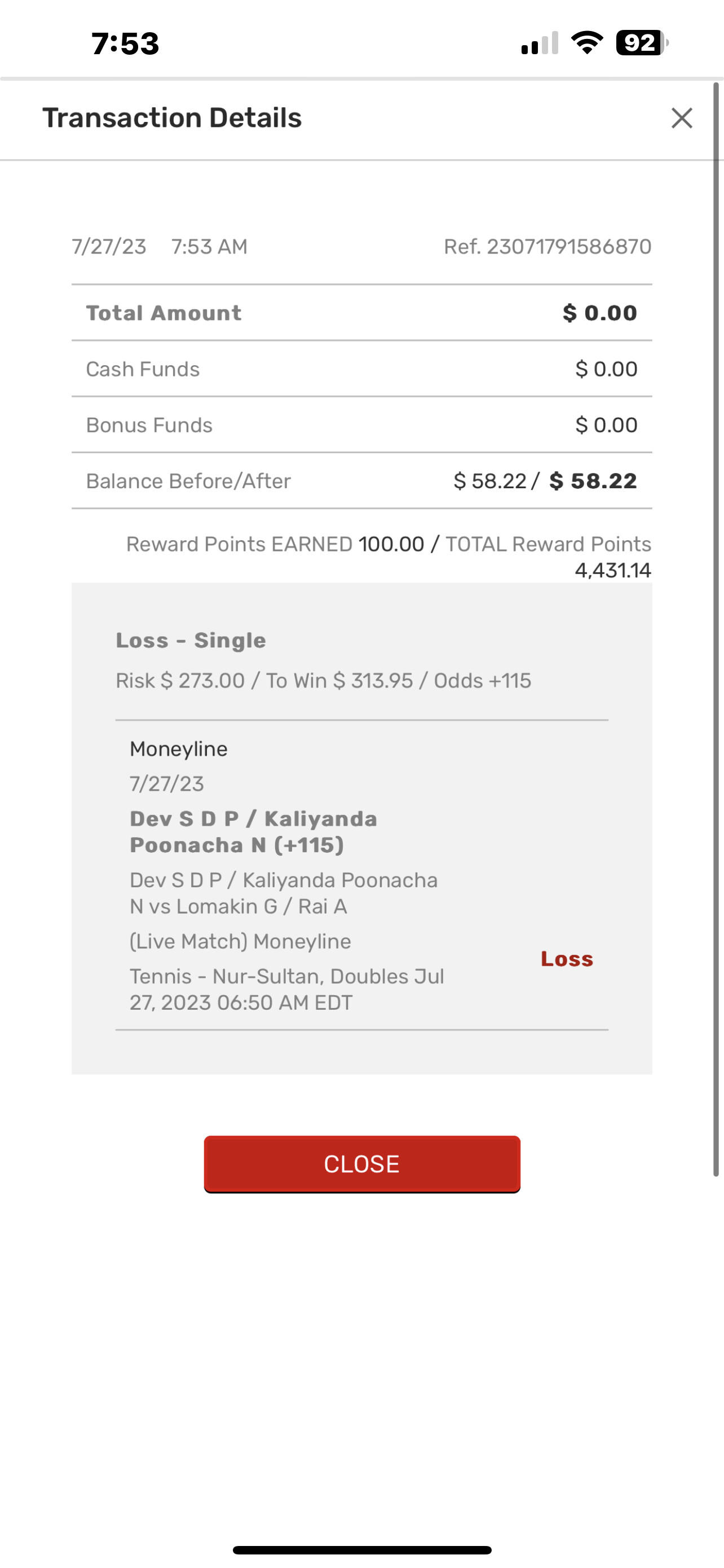 Please grade the royals leg of this round robin. Its still pending. Please keep in mind. Its a round robin. Multiple wagers with this id. Need royals graded. 23071791142334