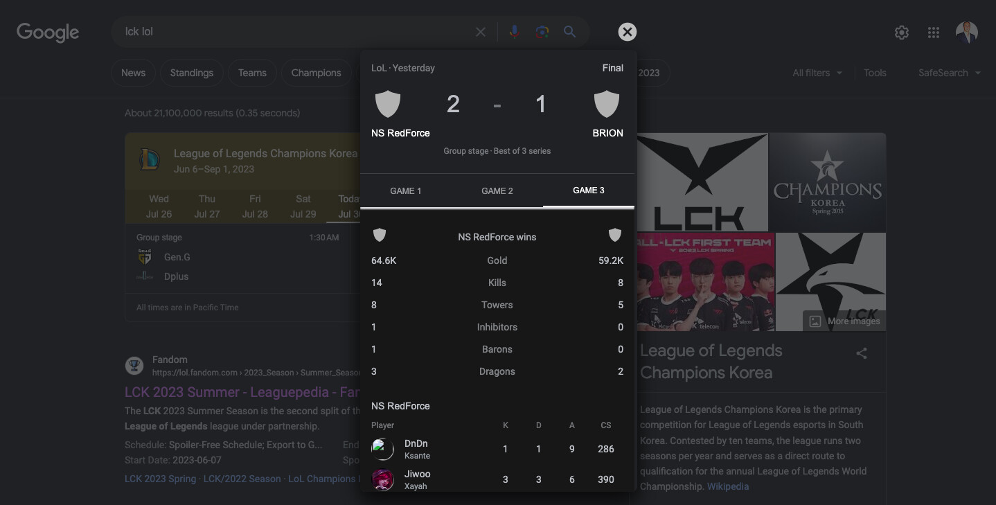 Final kill score was NS 14-8 BRO for a total of 22 kills.