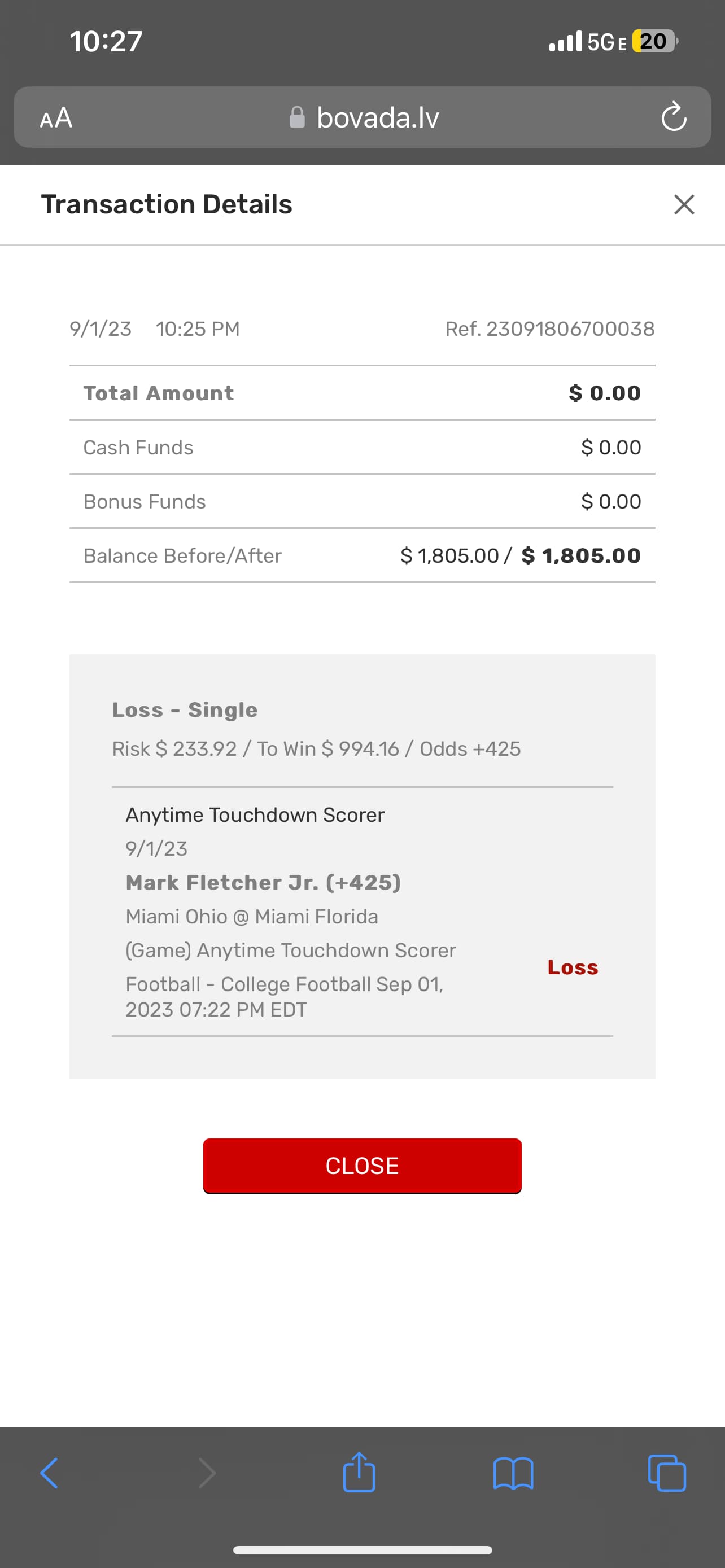 @Mikey_Bovada this was ruled a loss and clearly should be a win. I posted the box score and Mark Fletcher scored a TD in the game. Please fix. This is now the second time in a month I’ve had a prop bet get settled incorrectly