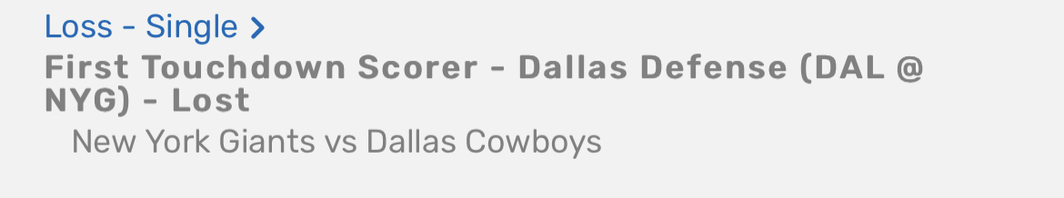 @Paul_Bovada @Mikey with all due respect, that is a highly dishonest answer. There was no option for âDallas Special Teamsâ in prop builderâs first touchdown scorer, are you seriously telling me I shouldâve bet an option that doesnât exist? Check for yourself. In tonightâs NFL match, there is no Buffalo Special Teams or NYJ Special Teams choices, only Defense for each team. This was the case for Sunday nightâs game.