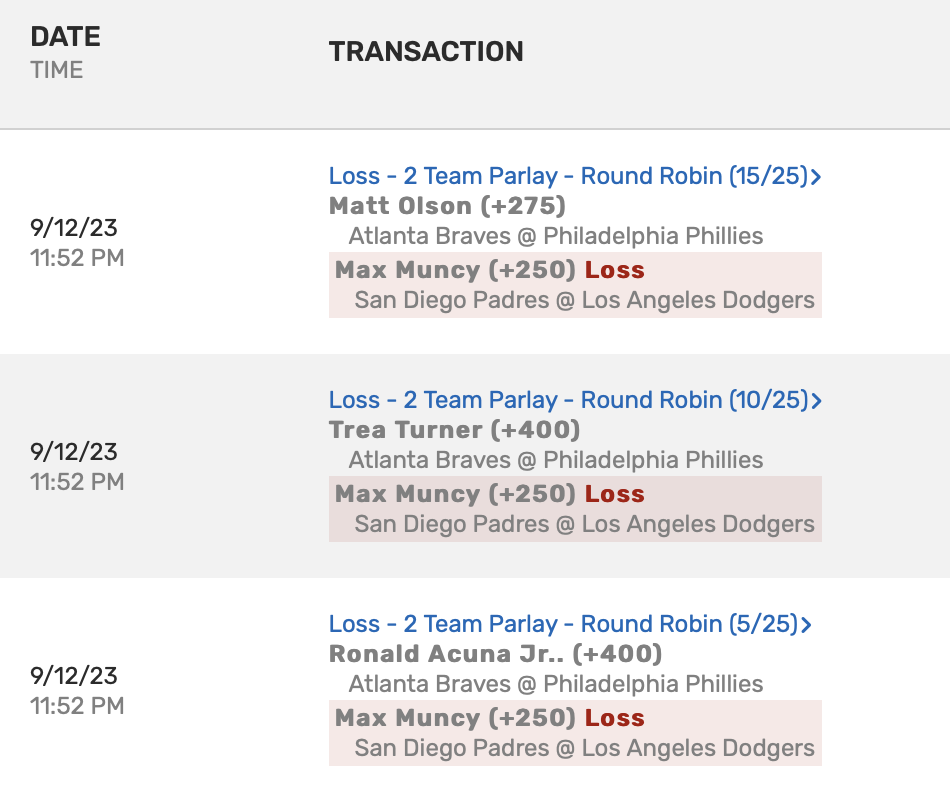 in 23091813226709 3 Team Parlay - Round Robin (3 ways) 3 of the 8 players hit HR’s but it was still graded as a loss. If I’m missing something please let me know.