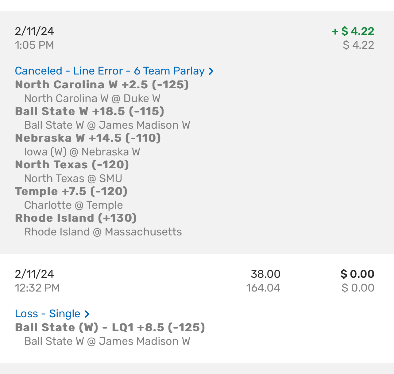 and cancelled a parlay that actually was looking good instead of just the single game in the parlay