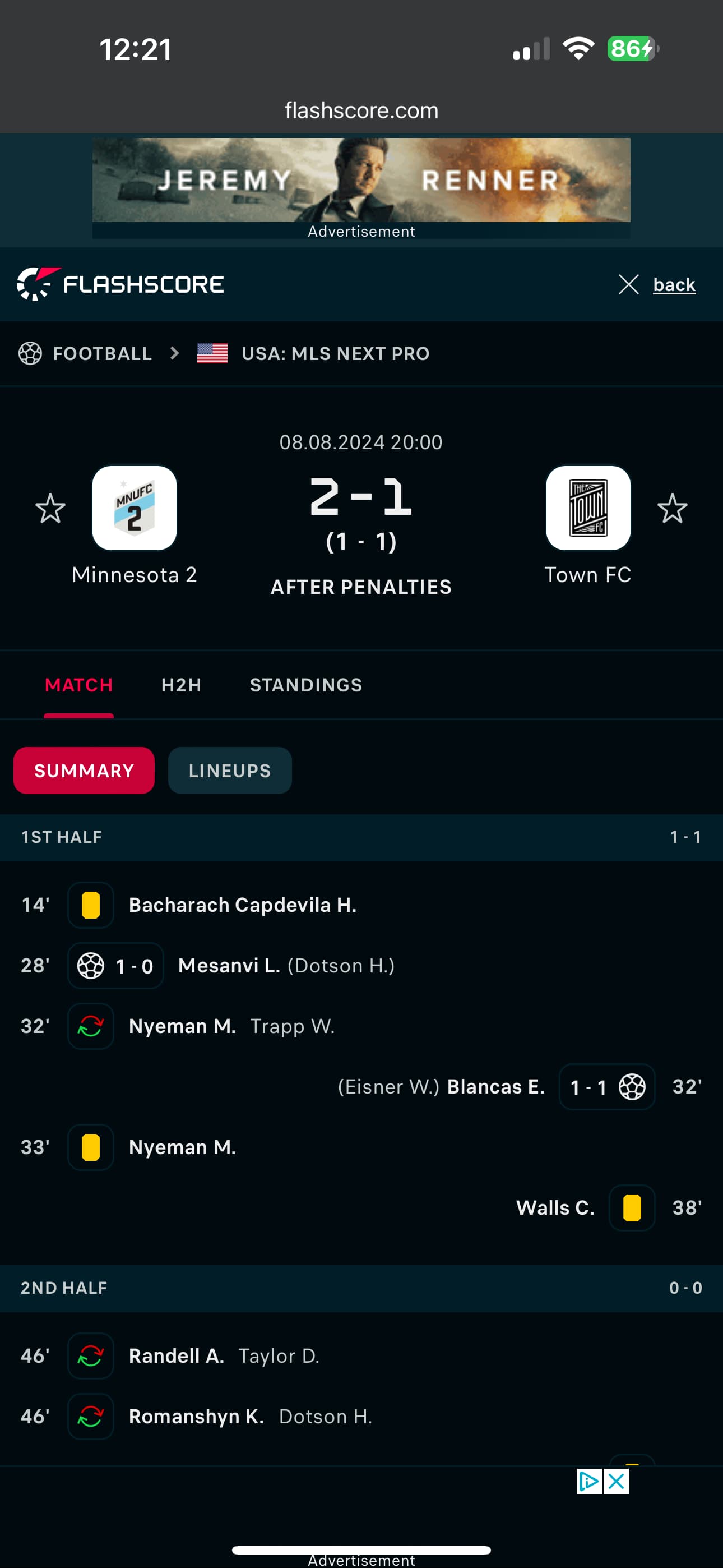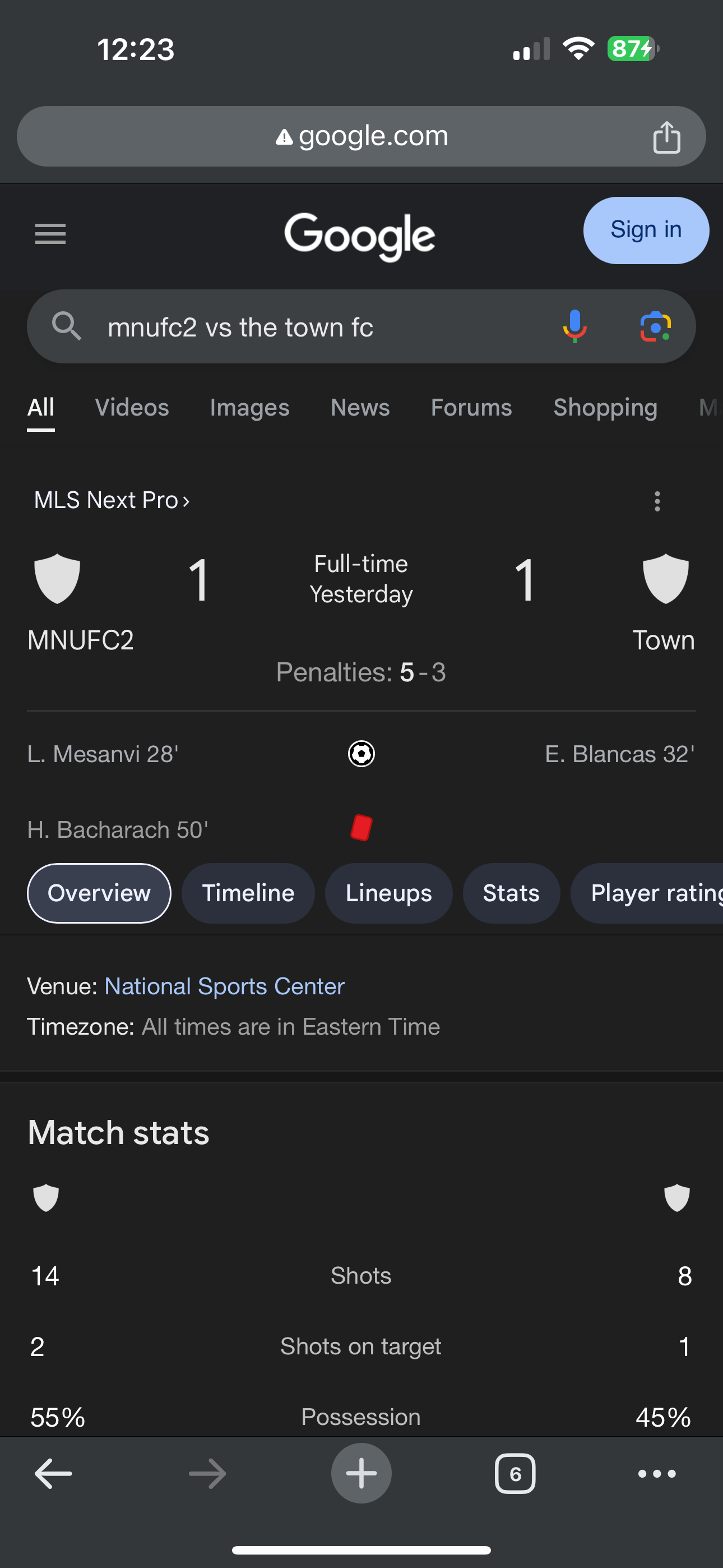 Correct, from the screenshots you shared it shows Minnesota vs Town FC? Is that the same game?