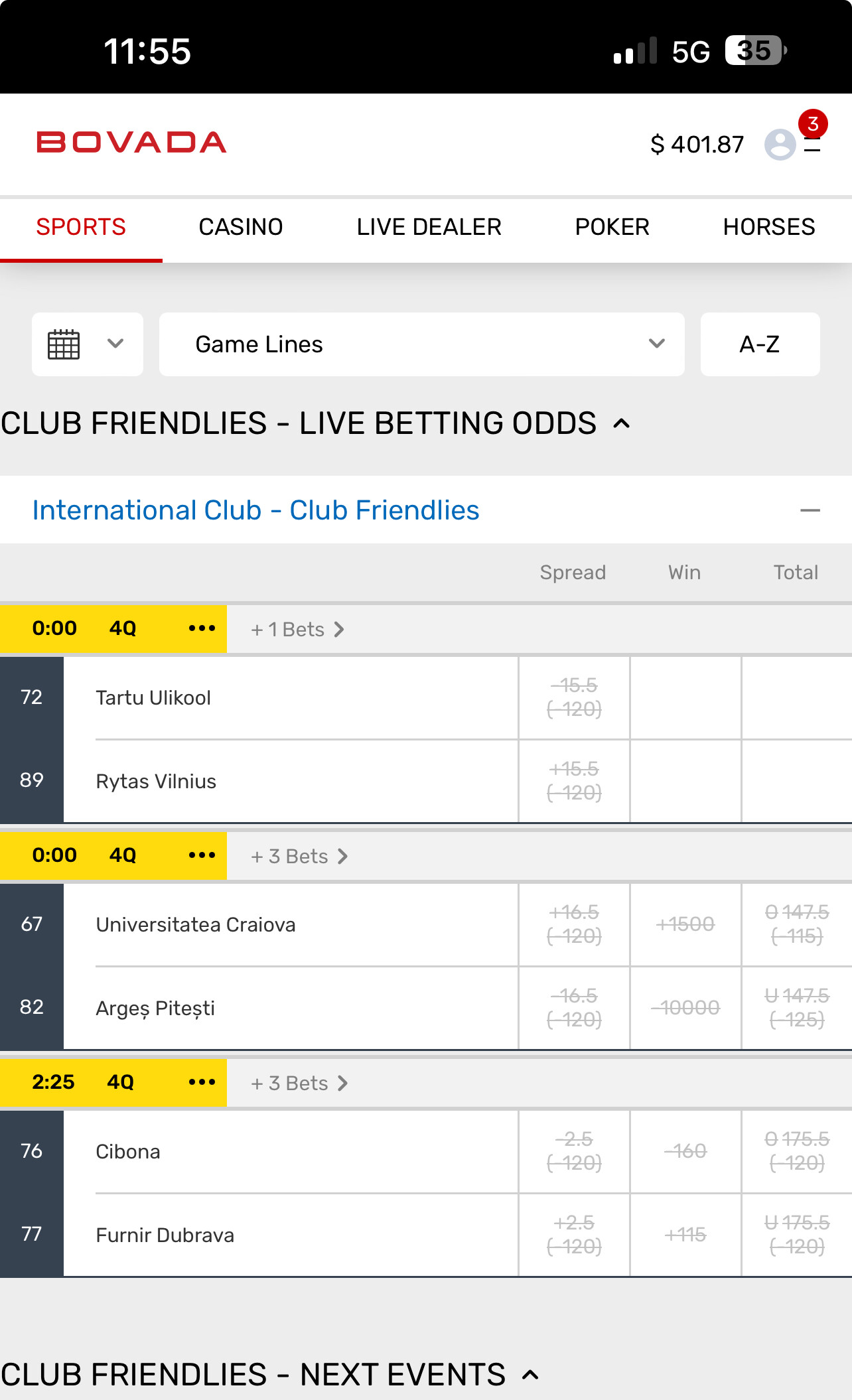 Yeah it’s as obvious of an incorrect line as their could be -25.5 rytas was pre game so why would they be up 11 points and my line be tartu +4.5, 5.5 at the time i bet it