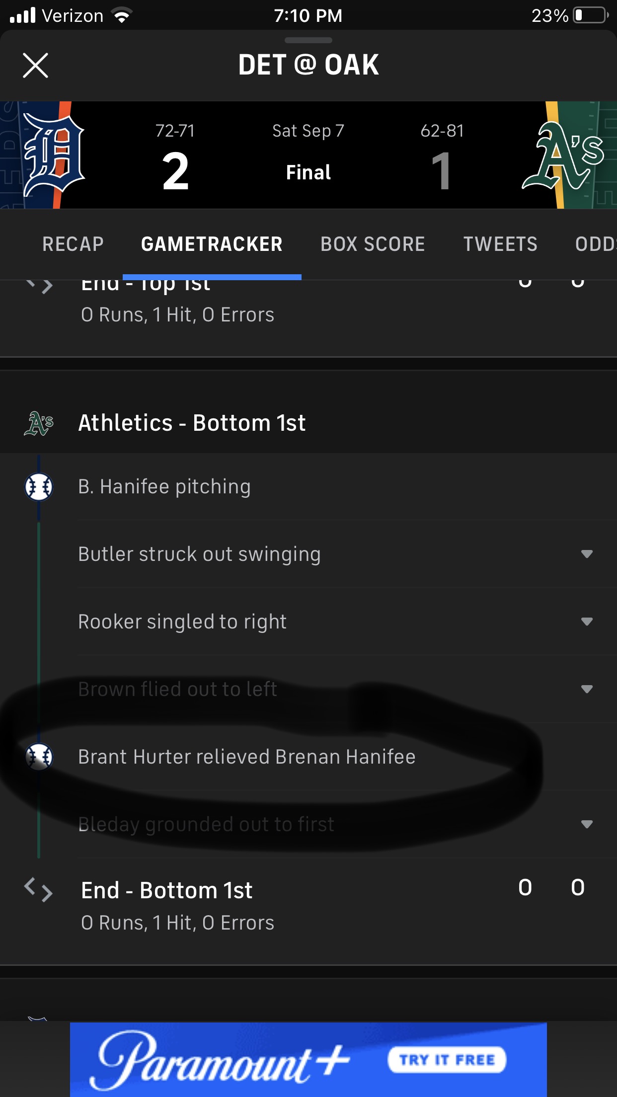 Ref. 24091988016594 This should be voided. No Action. Brant Hurter never started the game