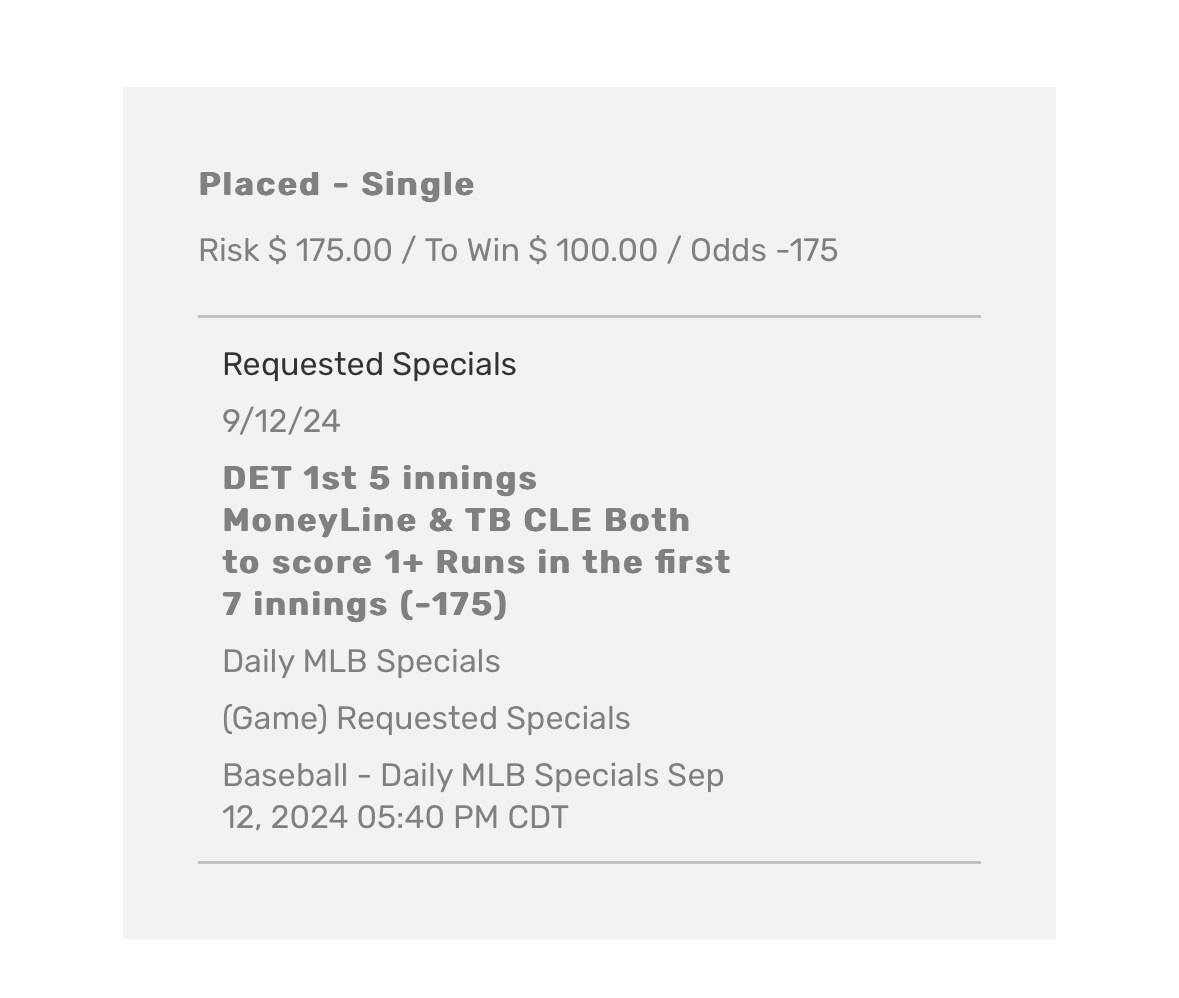 A review of this wager shows that this was resettled as a win on 08/31/2024 at 8:50PM and $763.64 was credited to your account for your winnings. Please check your transaction history you will see the change reflected.