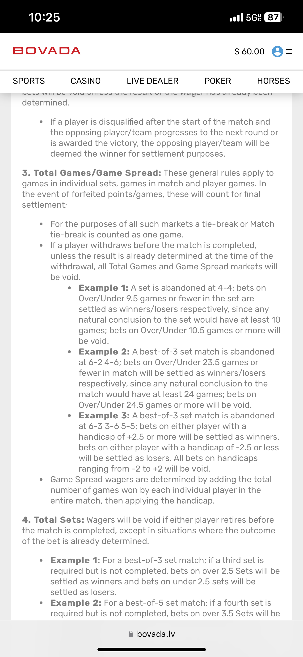 Hello I need the following wager reviewed and fixed. As per the tennis rules any natural conclusion would’ve been at least 26 games since a 3rd set was to be played.