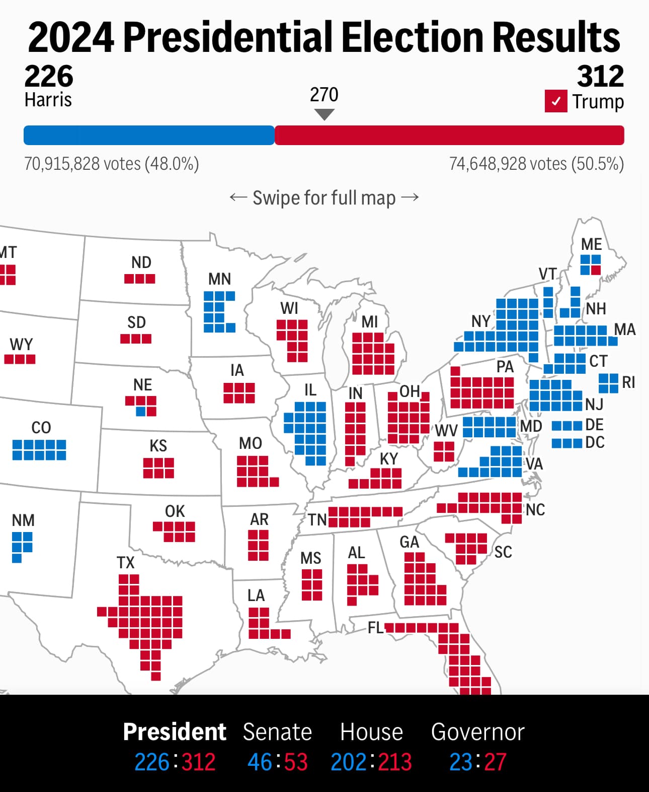 There are 538 electoral votes in USA, and all of them are counted COMPLETELY