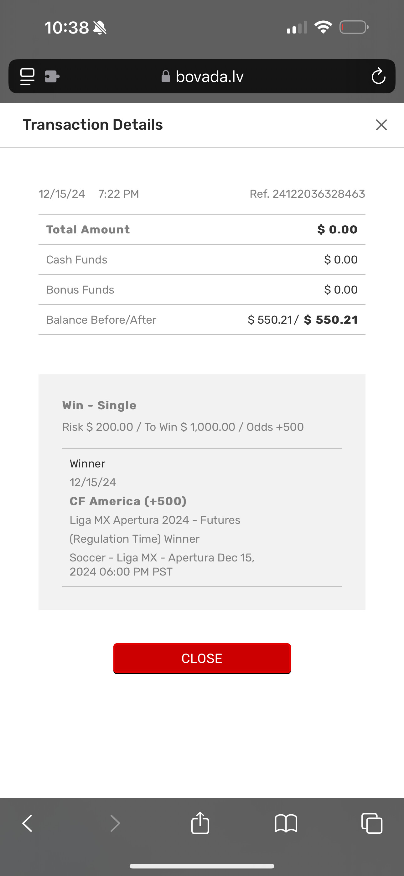 The wager ref. 24122041151723 is now settled as a win congrats on your winnings.