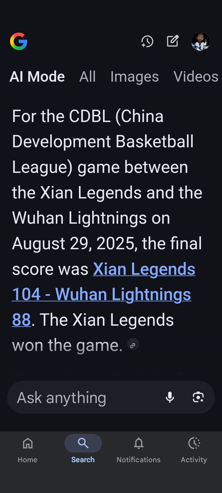 Could you please check this wager for me. I was given a loss… but the team won Xian Legends 104-88 It’s was only a small bet.