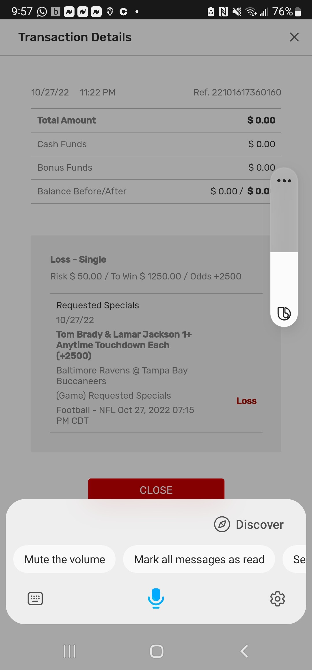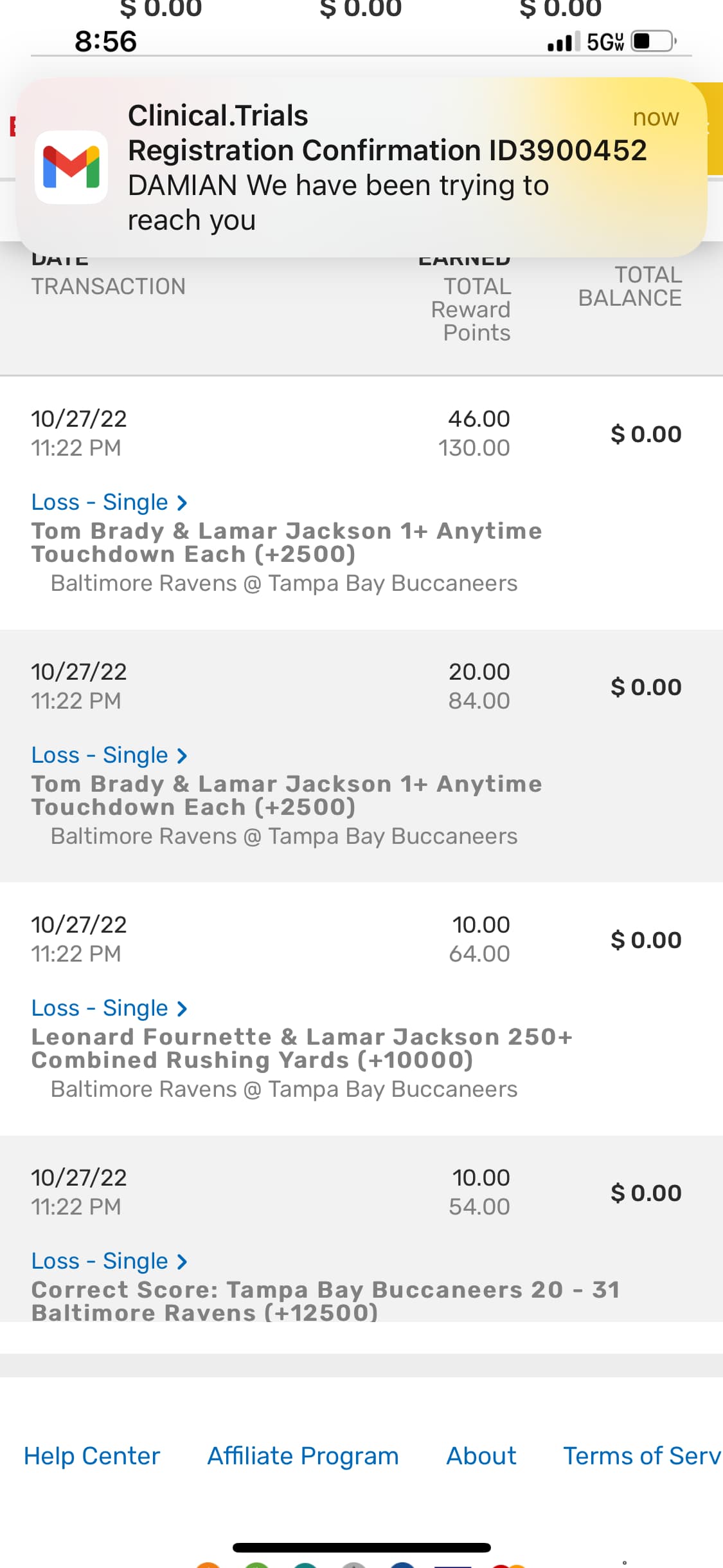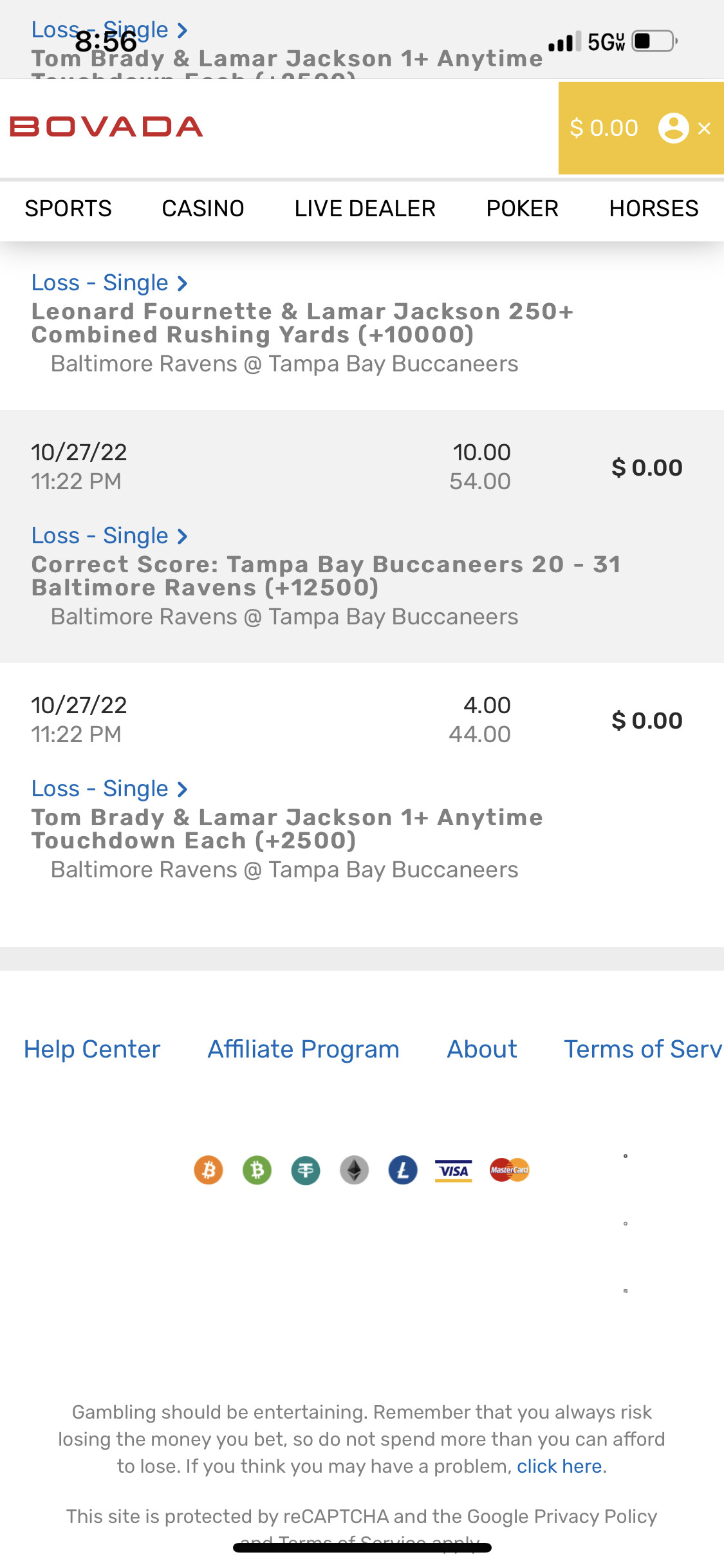 Hey how are you doing my bet did not pay out last night there were no extra stipulations on the bet! It’s was on the Tom Brady Lamar Jackson one td each anytime.