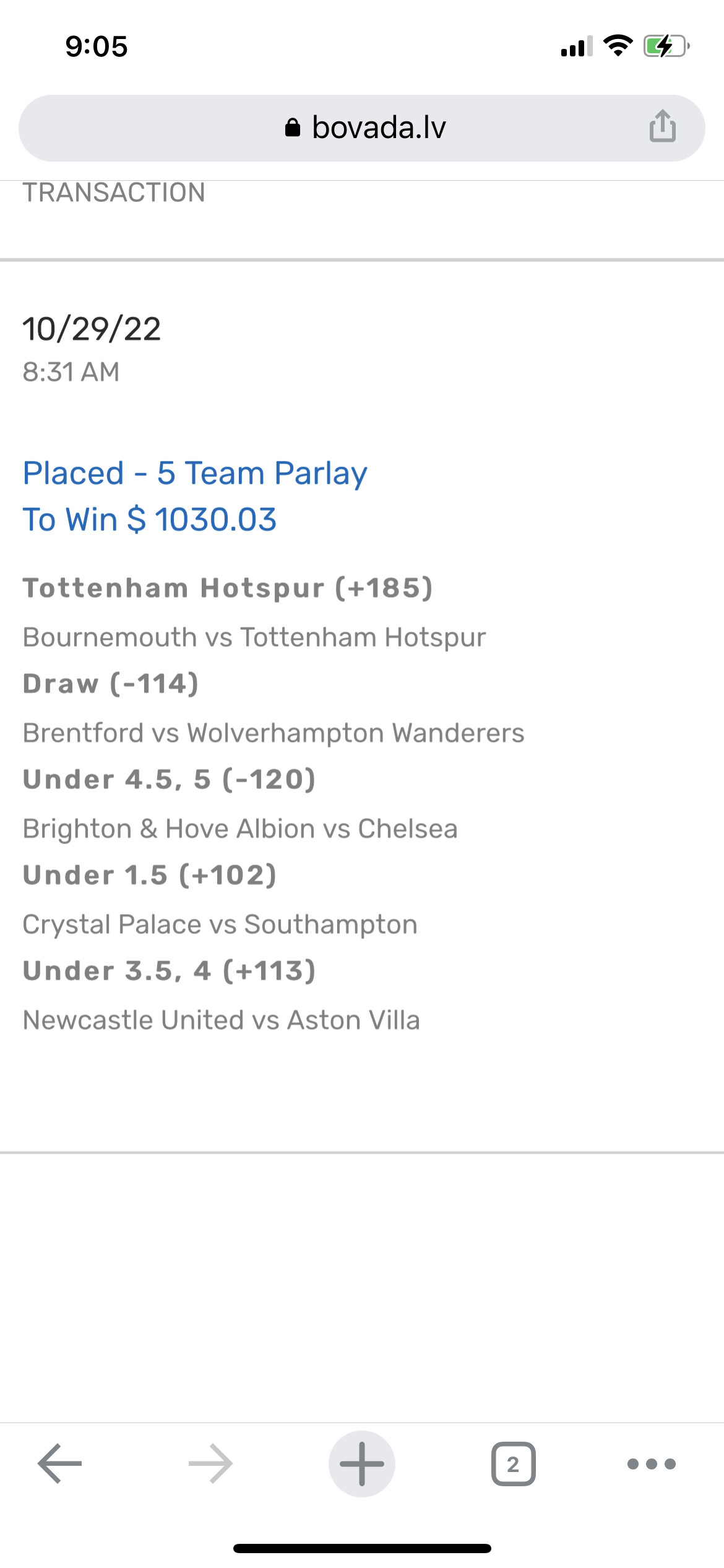The wager will be graded a little after the game ends.