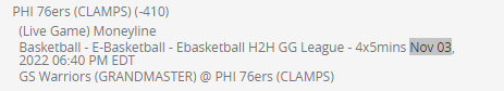 Side note. Just reviewed previous post and stated betsapi.com is used to reference by your team. Which clearly shows the team I picked won, this is bad business if you pick and choose which to use when it’s best for bovada. Here is the direct link to “our reference site” showing your team graded wrong- https://betsapi.com/r/5844766/GS-Warriors-(GRANDMASTER)-Esports-vs-PHI-76ers-(CLAMPS)-Esports