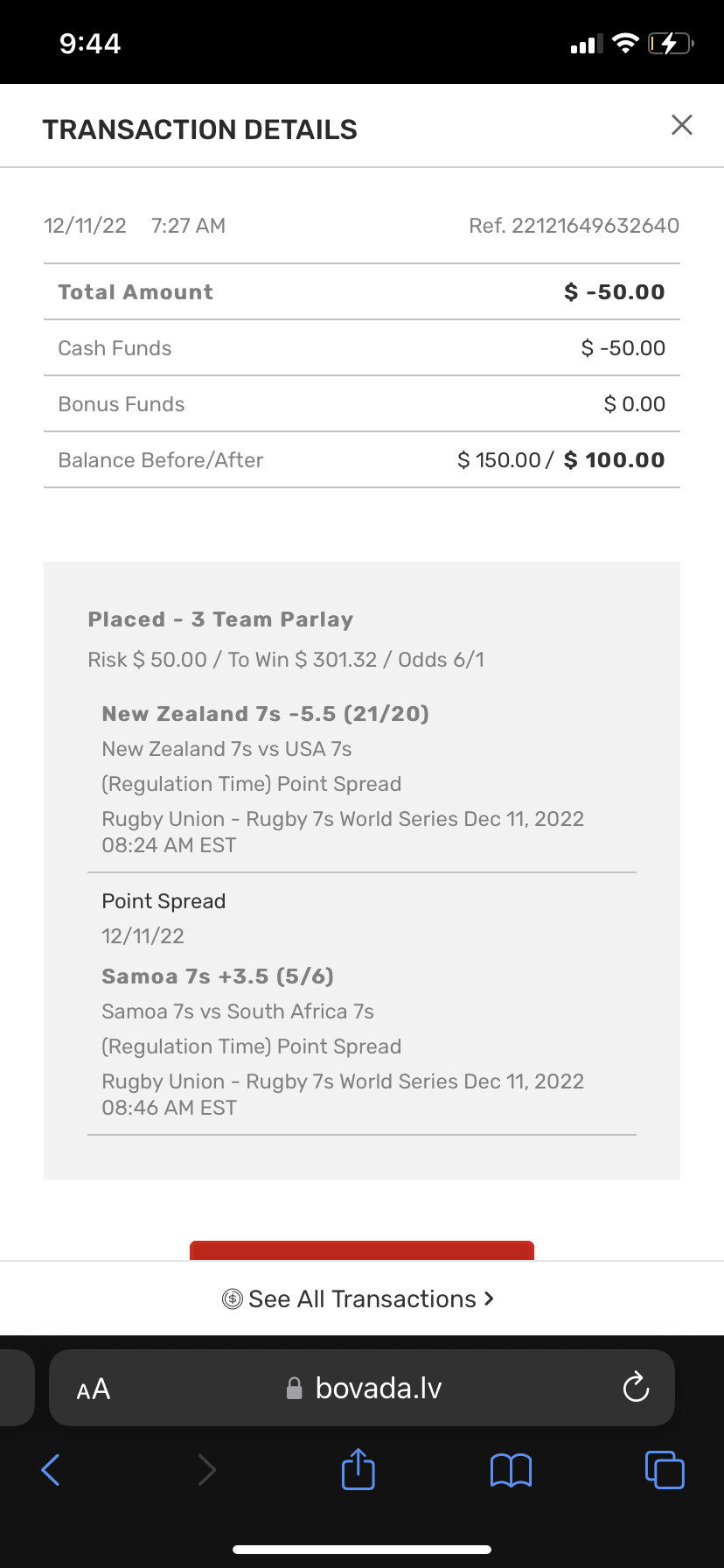 Wonât let me reply to thread, just to my post. I definitely placed the wager on December 23 for Match played on same date.