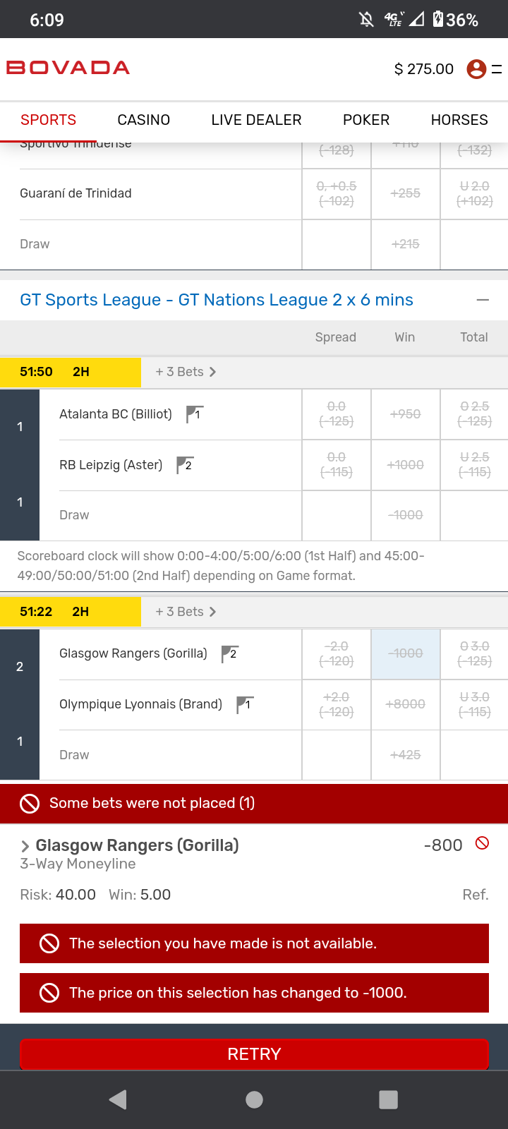 Y’all notice how it will let u book a play that u will lose and it goes in the direction of a loss then if u would win it says the play is unavailable