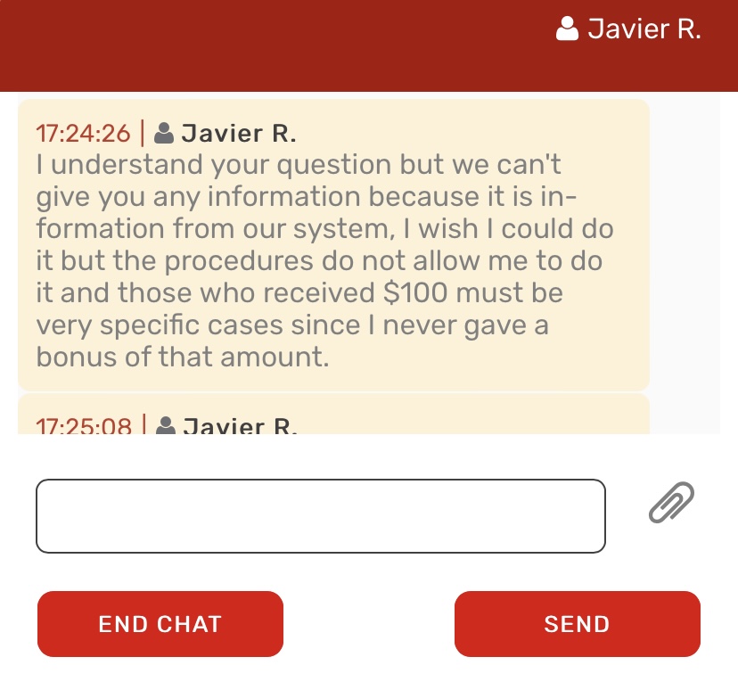 I used the chat twice. The first person said they werenāt giving anything out until everything was fixed, I think. The chat just went away before I was finished reading it. The second time the person gave me 30.