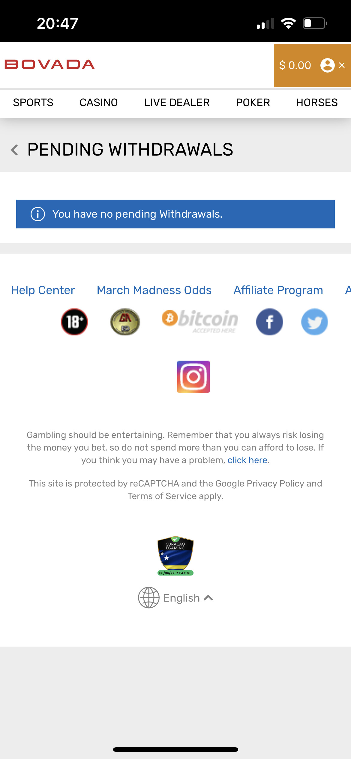 Yes it says it has been taken out of my bovada account but is still pending but when I click review it says no pending transactions