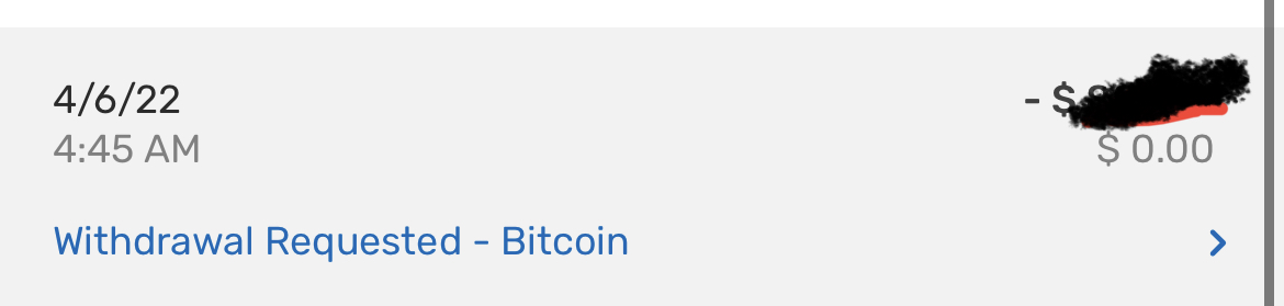 Also try going to your Withdrawals tab in your account and see what the latest transaction is under there.