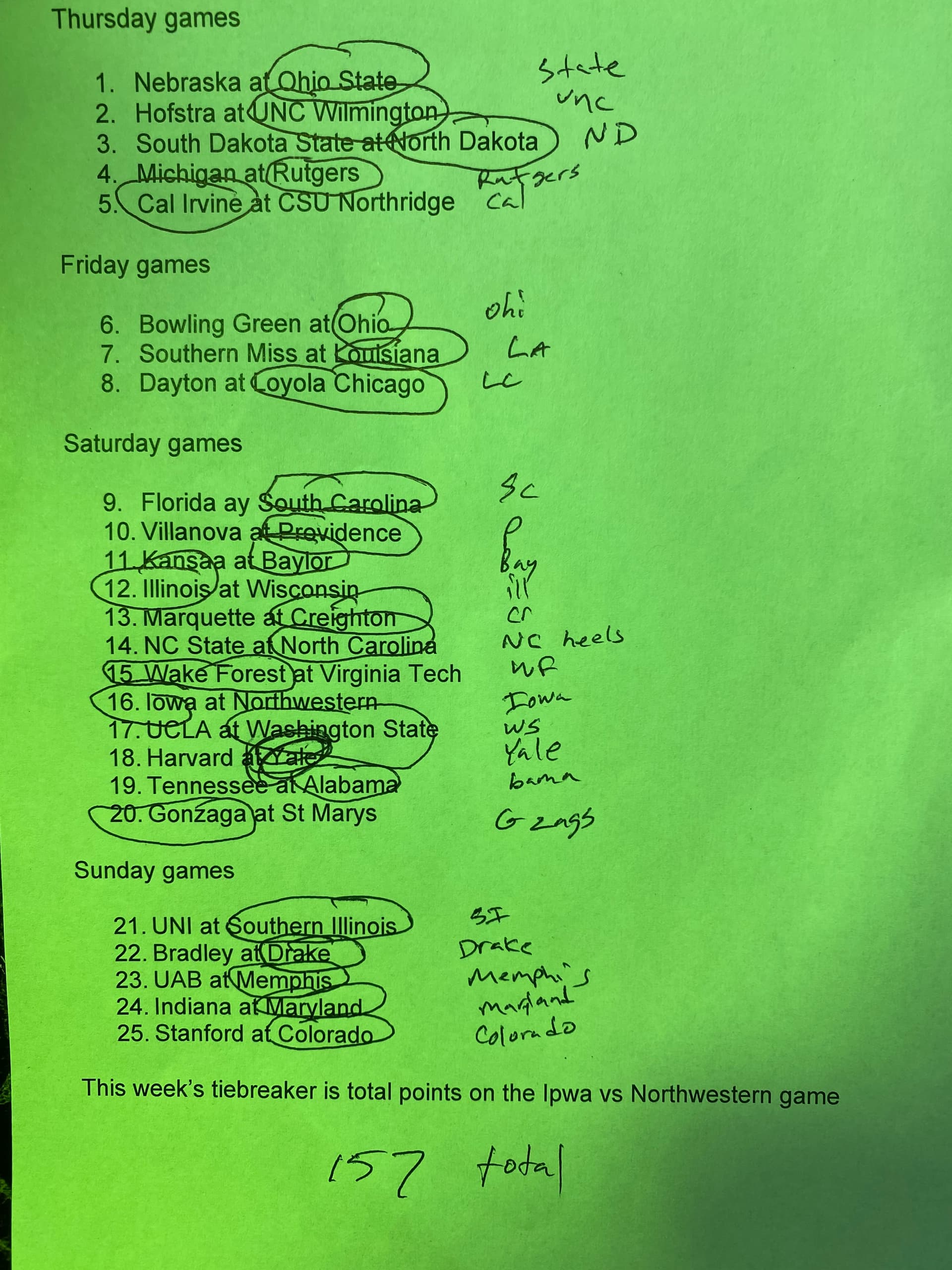 You’re good, @Rule99. Your picks are listed fine. I don’t care about the numbering as long as you list all 25 games. Lots of people’s picks were numbered screwy last week. No worries!