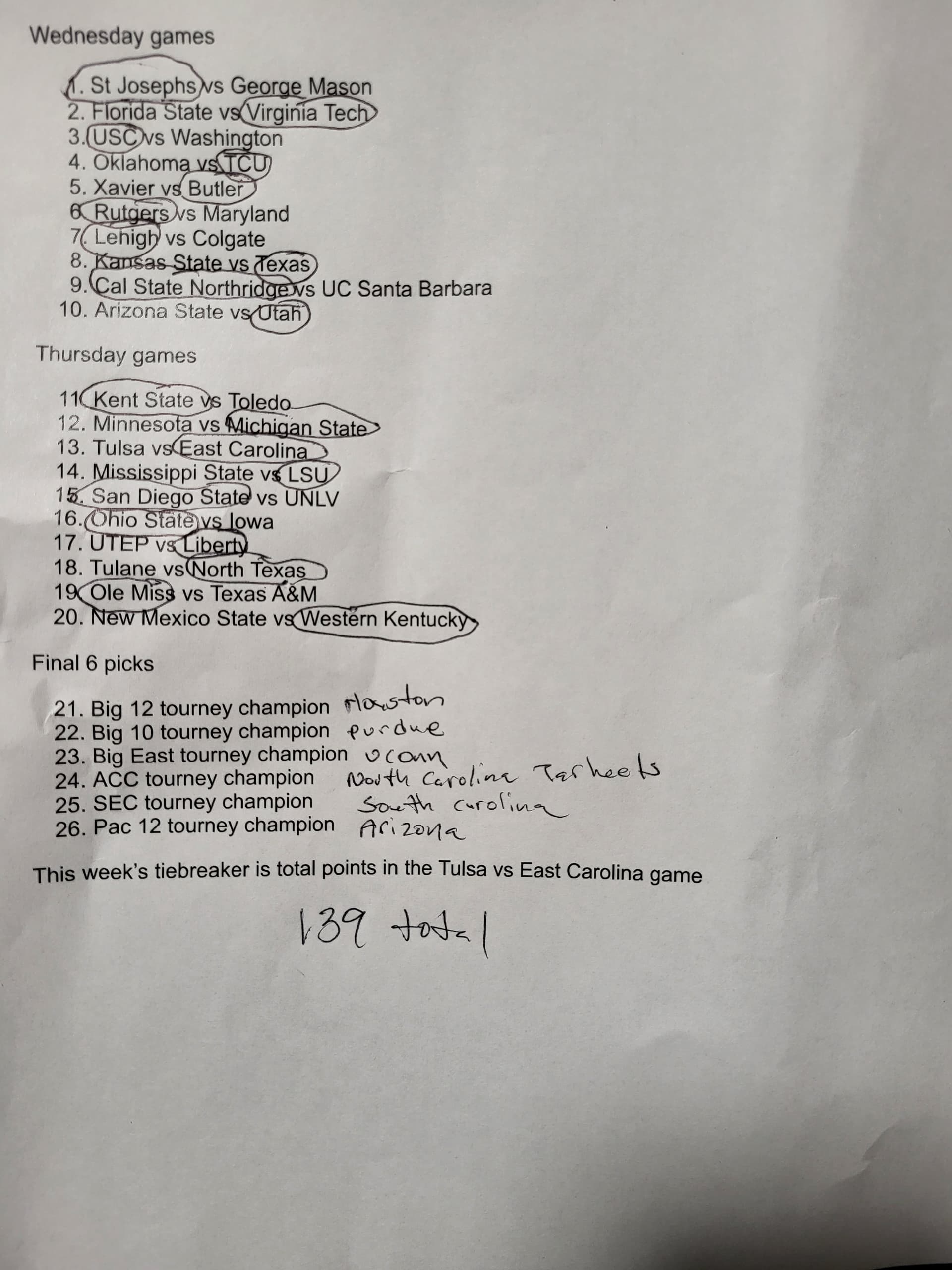 conference tourneys ( so we will be making 26 picks )